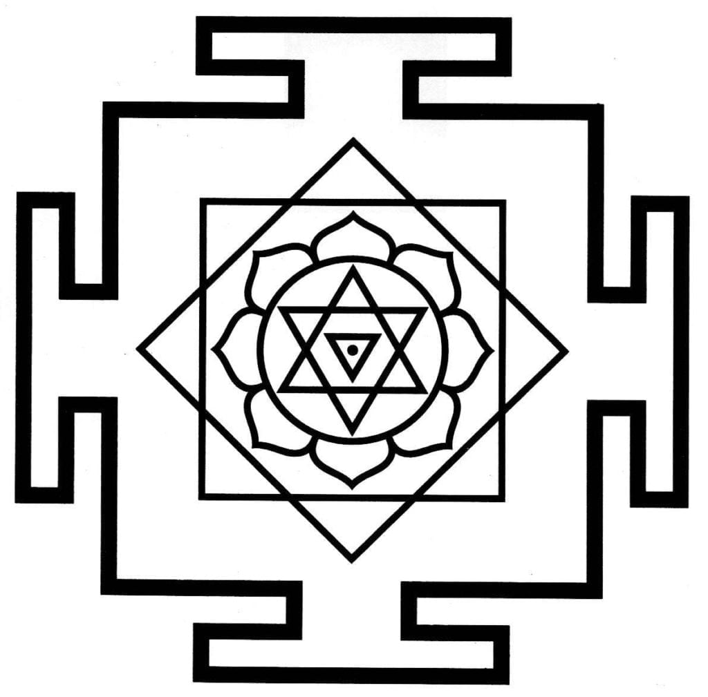 Además, las Shaktis de sus ocho trikonas son Jvalini, Visphulingini, Mangala, Sumanohara, Kanaka, Ankita, Vishva y Vividha. Por otro lado, en los 12 pétalos están los 12 signos del zodíaco hindú.